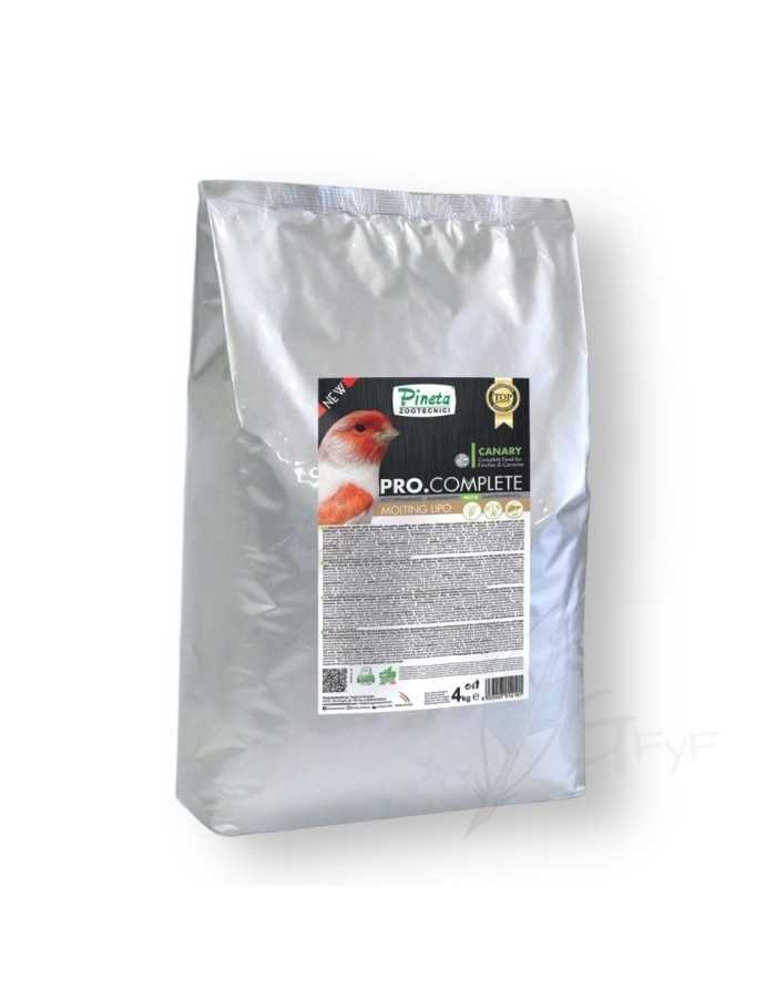 Pienso completo listo para usar, específico para satisfacer las necesidades nutricionales y aminoácidos en la fase de muda, rico en lípidos para una óptima correcta fijación de los colorantes (por ejemplo, rojos alas blancas, Norwich, Gloster, fifes y canarios lipocromos como amarillos intensos, nevados, Mosaico, etc.)